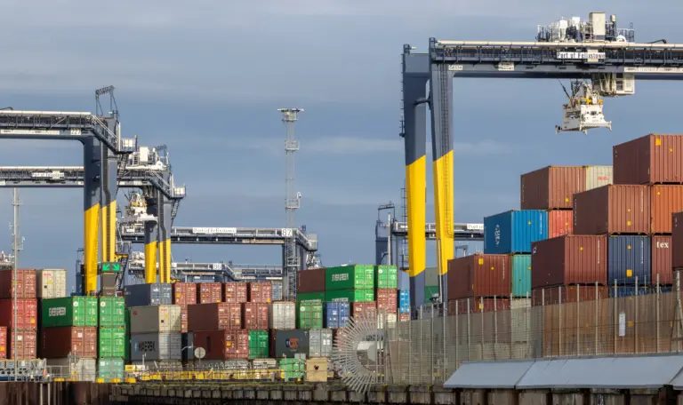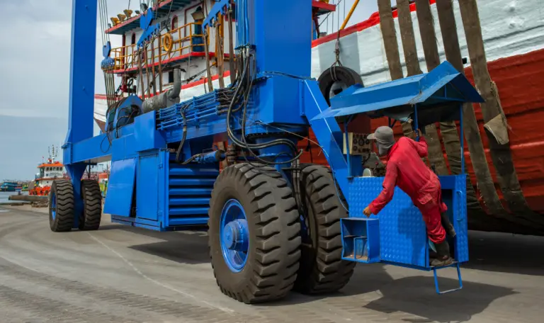 Trained professionals manage cutting-edge rubber-tired gantry cranes for optimal container movement.
